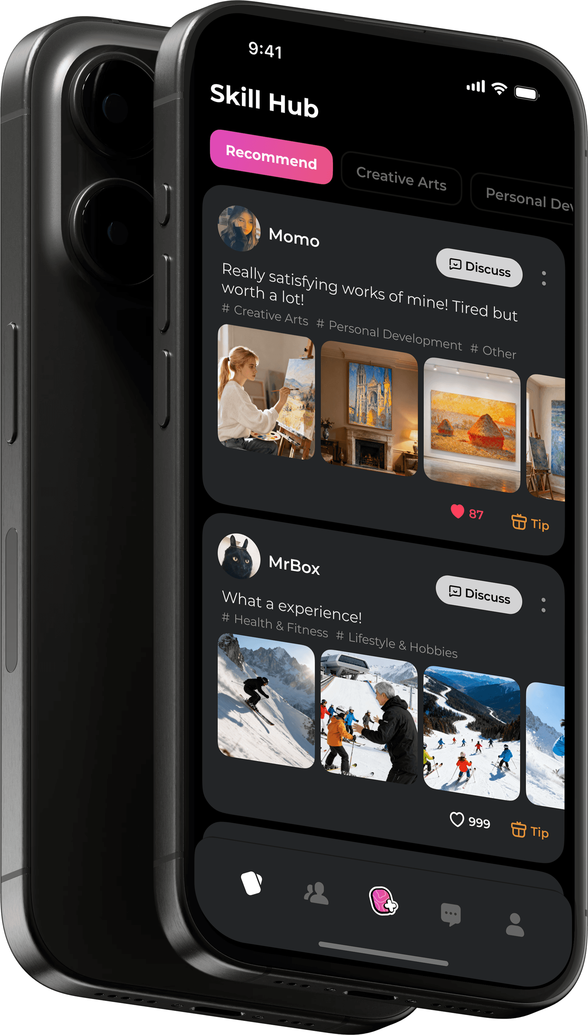 Communicate in the way that suits you best — through text, voice notes, or images. Nomu lets you share your skills, ideas, and moments in the format that feels most natural. Whether you’re explaining a technique, asking a question, or showing something you created, Nomu gives you the freedom to express your style your way.