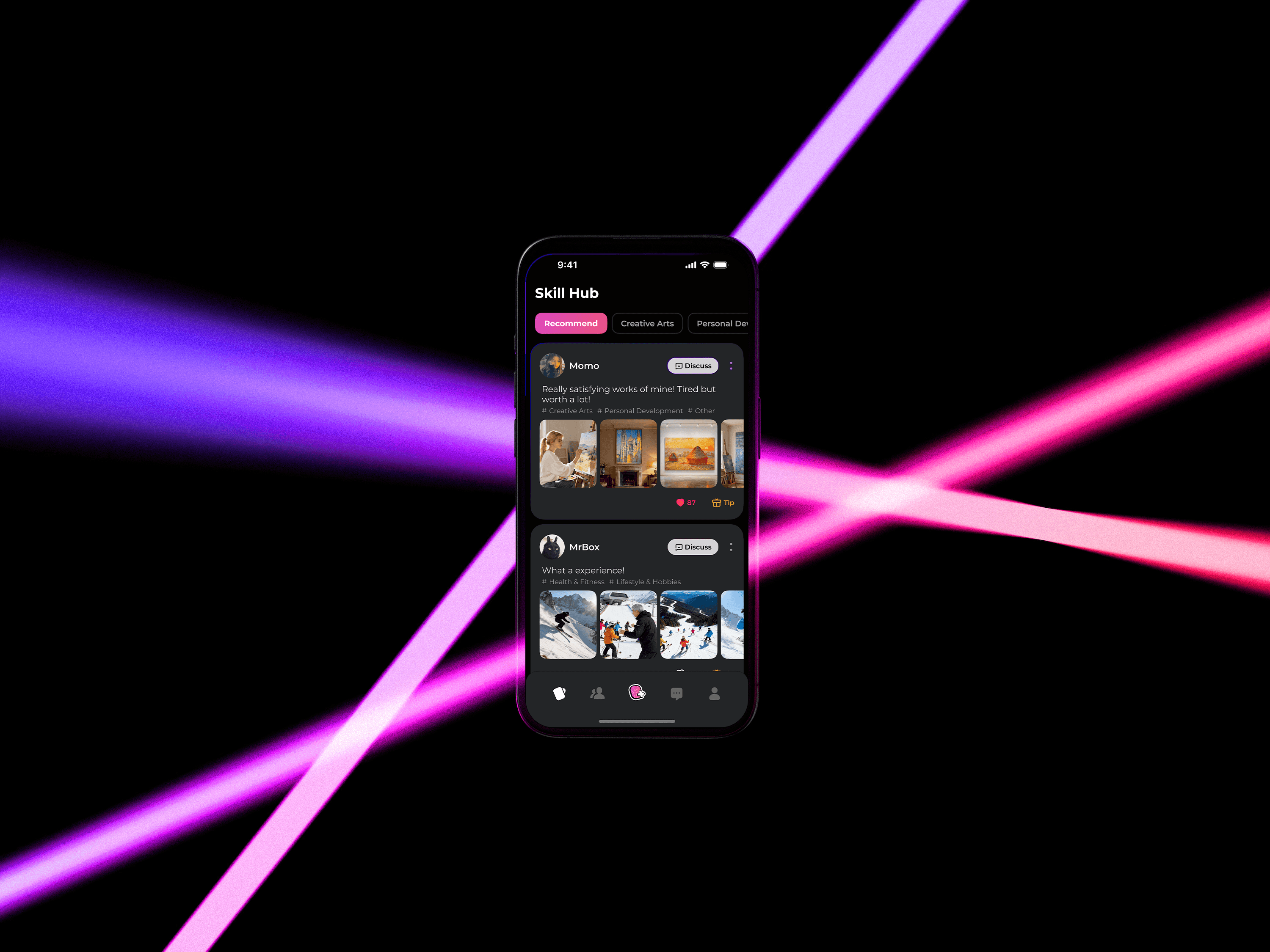 Show your ideas however you want—write a post, share a photo, record a quick voice note, or upload progress shots. Nomu makes it easy to express your skills in any format that feels natural to you.